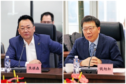 左起:華東師大副校長施國躍,中國工程院院士、華東師大校長錢旭紅,中國京安董事長焦祺森,中國京安副總經(jīng)理、地月軌道空間董事長徐克
